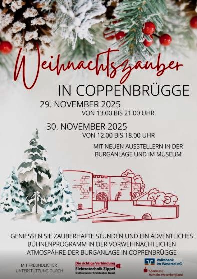 Am 29. und 30.11.2025 wird unsere Schule außerdem mit einem Stand auf dem Coppenbrügger Weihnachtszauber-Marktauf dem Burggelände vertreten sein.